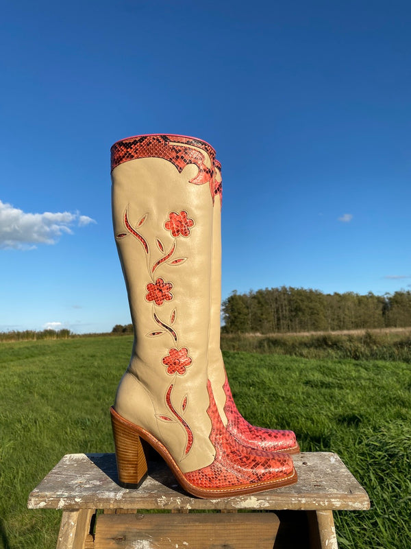 Don’t miss out on our classic Dandelie leather boots in fresh, season-inspired hues and floral patterns. From Western boots and cowgirl boots to biker boots with bold details, our latest styles blend vintage charm with modern craftsmanship. Shop high-heeled and low-heeled leather boots for women, comfortable boots with rubber soles, and women’s ankle-length boots designed for effortless styling. Looking for a great deal? Don’t miss out on our sale boots, where you can score designer leather boots for women and vintage boots for ladies at unbeatable prices!