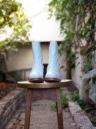 These flower ankle boots in blue are handcrafted in Spain. Our boots are made of the finest leather, and over time will adjust and mould to fit your feet perfectly. Our boots compliment any style, whether you’re a 70s vintage babe, a Bohemian soul, a Western cowgirl, or just looking to spice up your style! These boots are a statement, investment piece that will elevate any outfit.