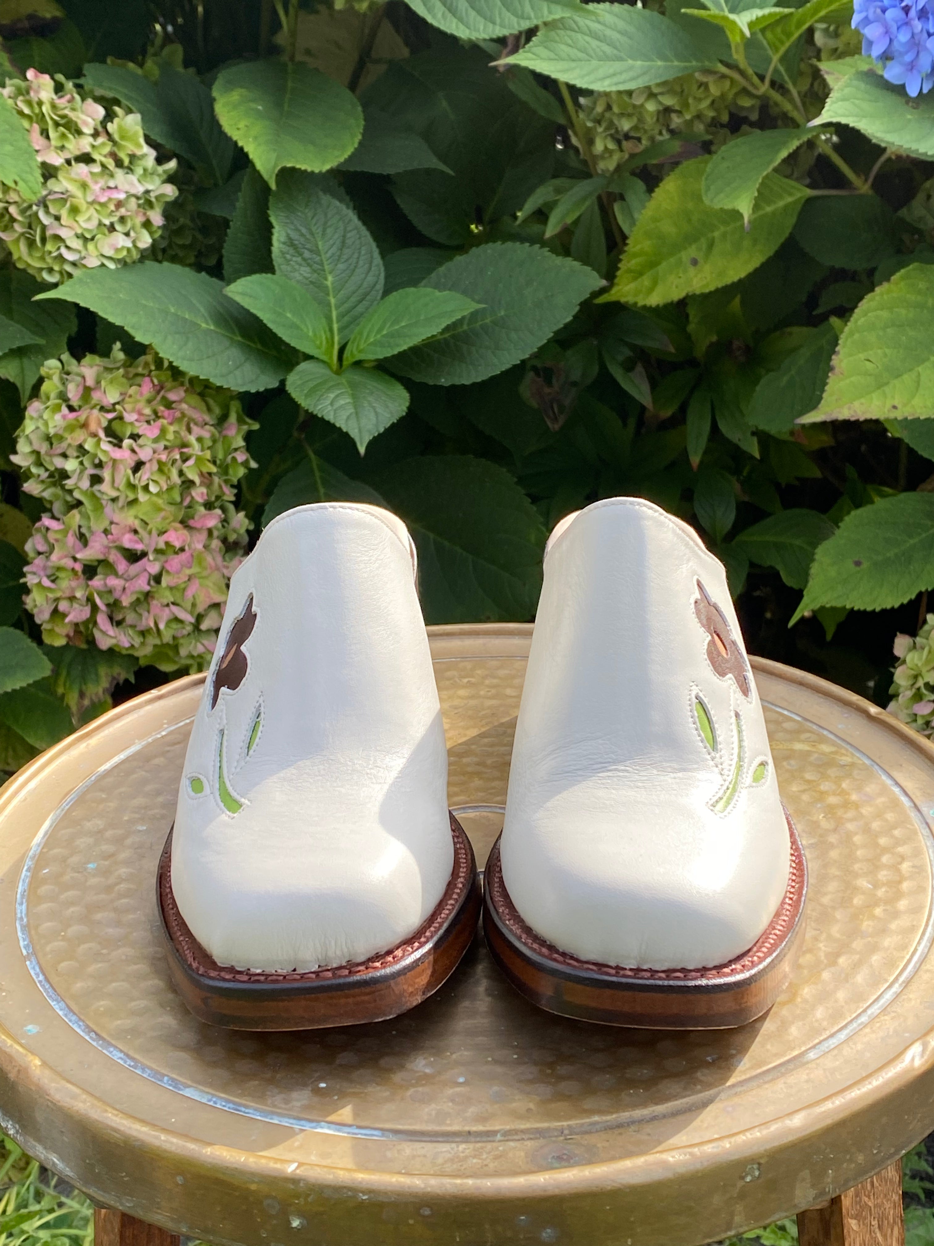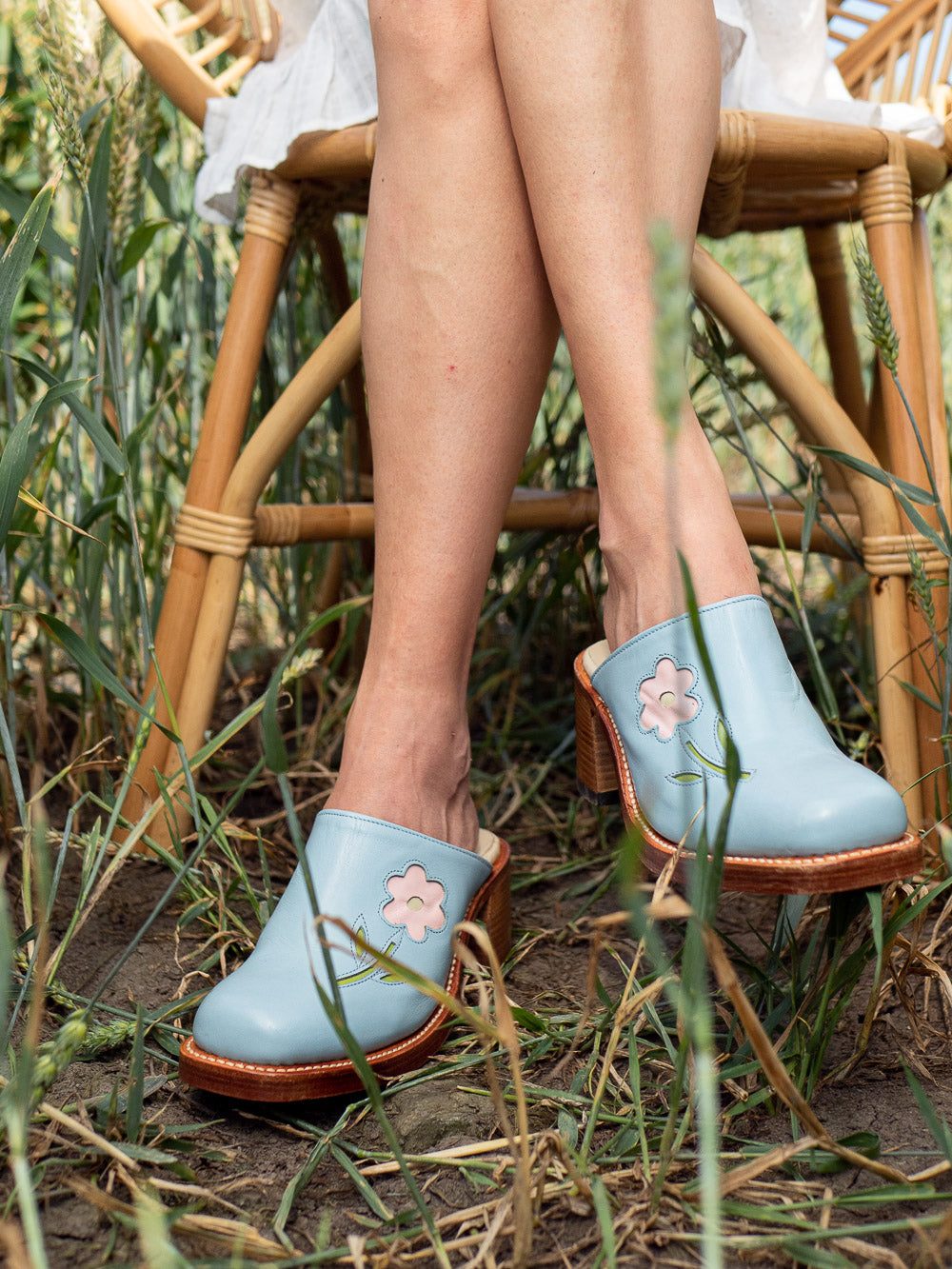 Verleihen Sie Ihren Outfits diesen Sommer einen Hauch von Verspieltheit! Schlüpfen Sie in Dandelies einzigartige Flower Clogs für Damen und setzen Sie mit ihnen florale Akzente, sobald die Tage wärmer werden. Diese handgefertigten Clogs mit Absatz aus hochwertigem Rindsleder sind nicht nur hübsch, sondern auch mühelos stylisch und passen perfekt zu fließenden Kleidern, langen Röcken und anderen Secondhand-Schätzen!