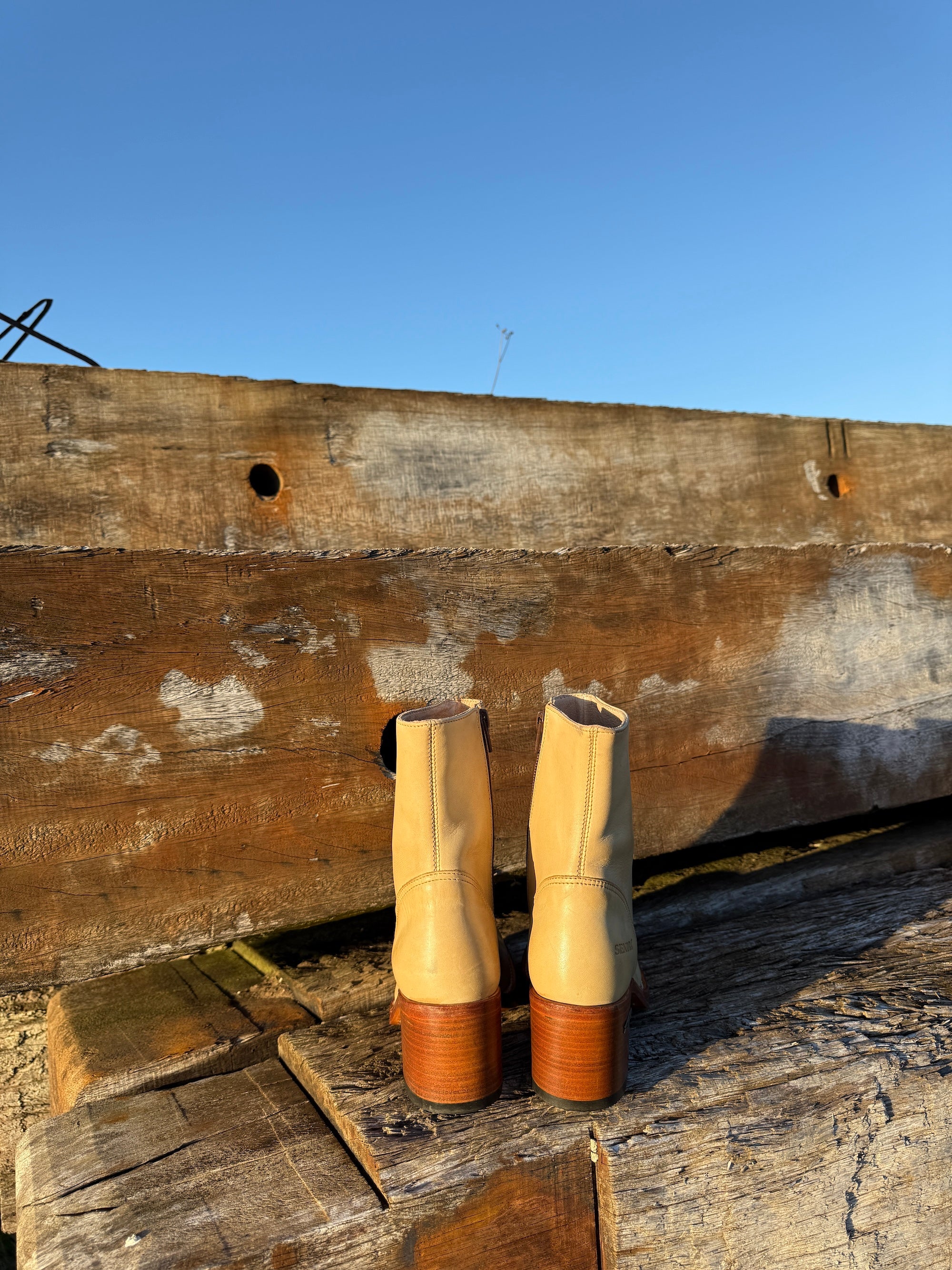 The rich camel hue of these designer boots for women brings warmth and versatility to your wardrobe, effortlessly pairing with everything from flowy summer dresses to tailored trousers. The chunky sole doesn’t just turn heads but it also offers durable grip and all-day support, making these boots as practical as they are stylish. Whether you’re adorning an edgy ‘70s boho-chic look, or rocking a bolder ‘90s denim silhouette, these cute boots can’t wait to be styled by you! The ankle-high silhouette hugs comfortably around your foot, while the side zipper ensures an easy, secure fit every time. Whether you're exploring city streets, powering through a workday, or heading out for a casual brunch, these booties promise to keep you comfortable without compromising your look.