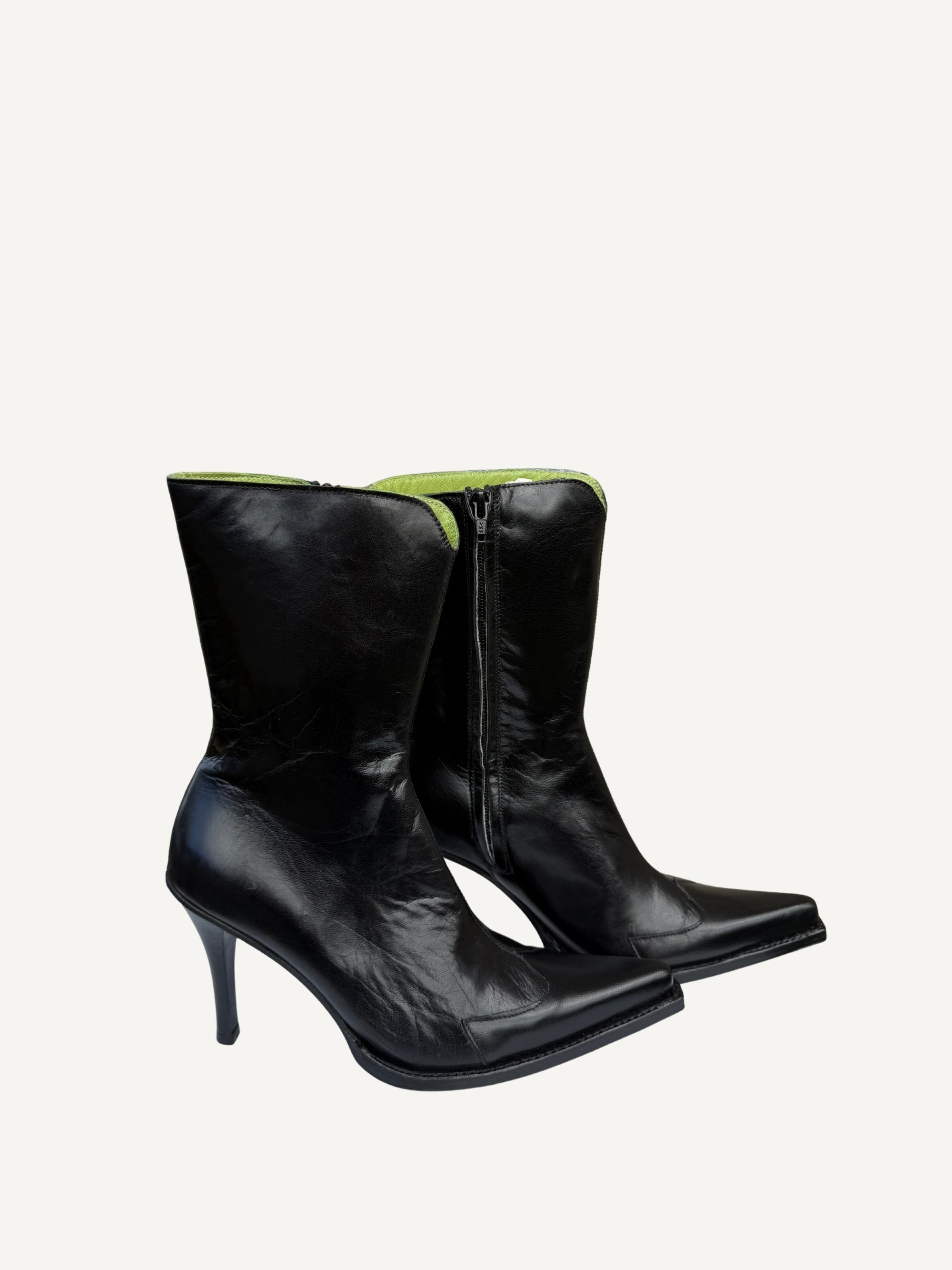 Black Y2K Snip Toe Boots With Studs - Deadstock