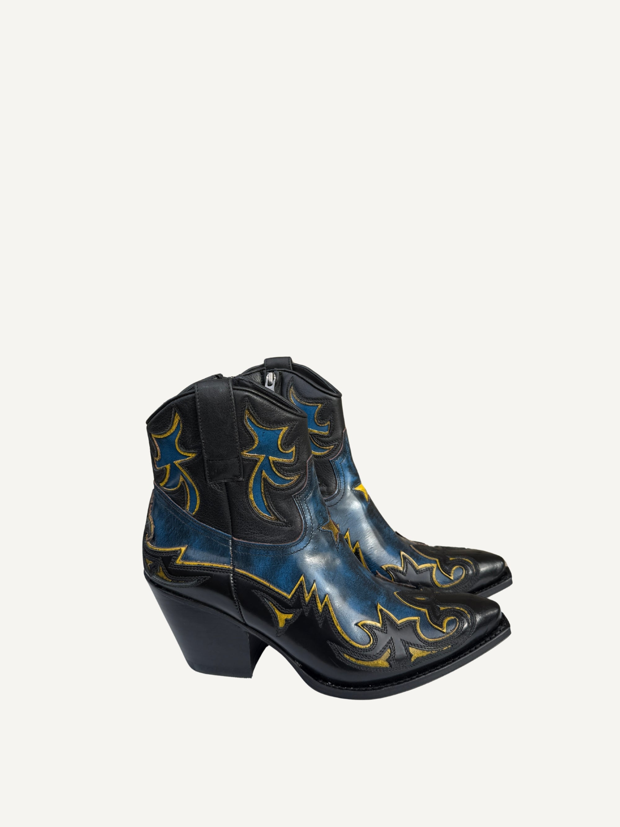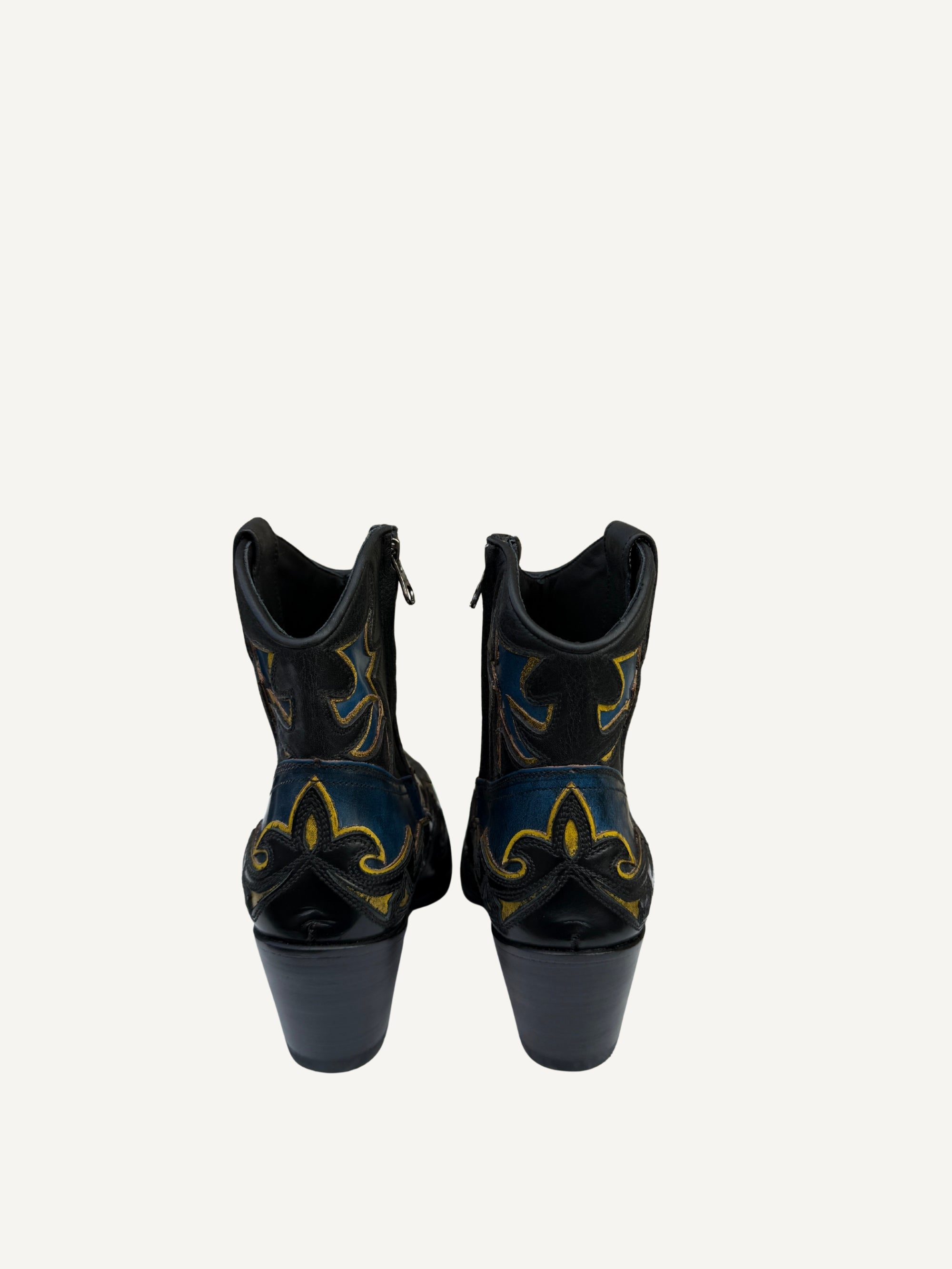 Black Western Boots With Blue Details - Deadstock
