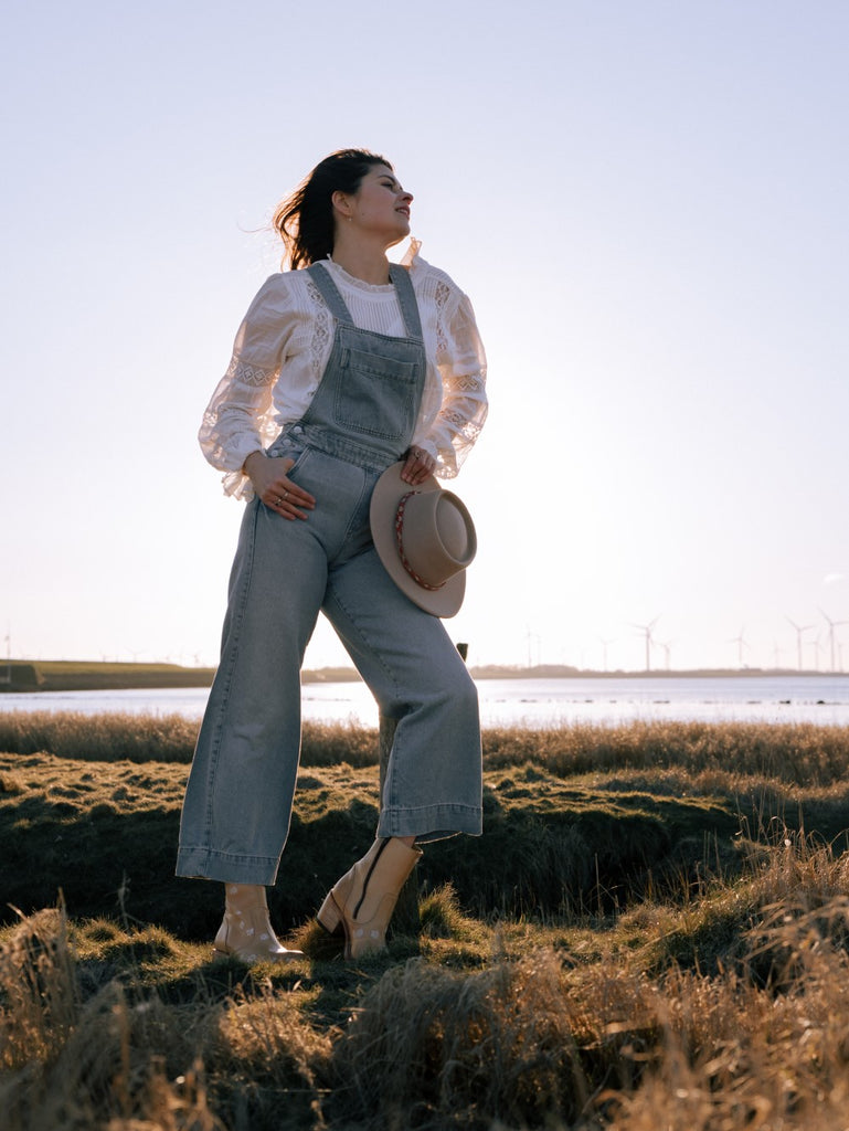 A deadstock denim overall with a slightly cropped length, a show off incombination with our boots!